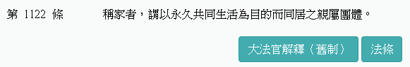 這時我們必須回頭去看,什麼是「家」?民法第1122條規定: