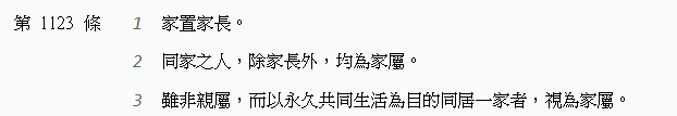 「家屬」這個名詞,來自民法第1123條的規定: